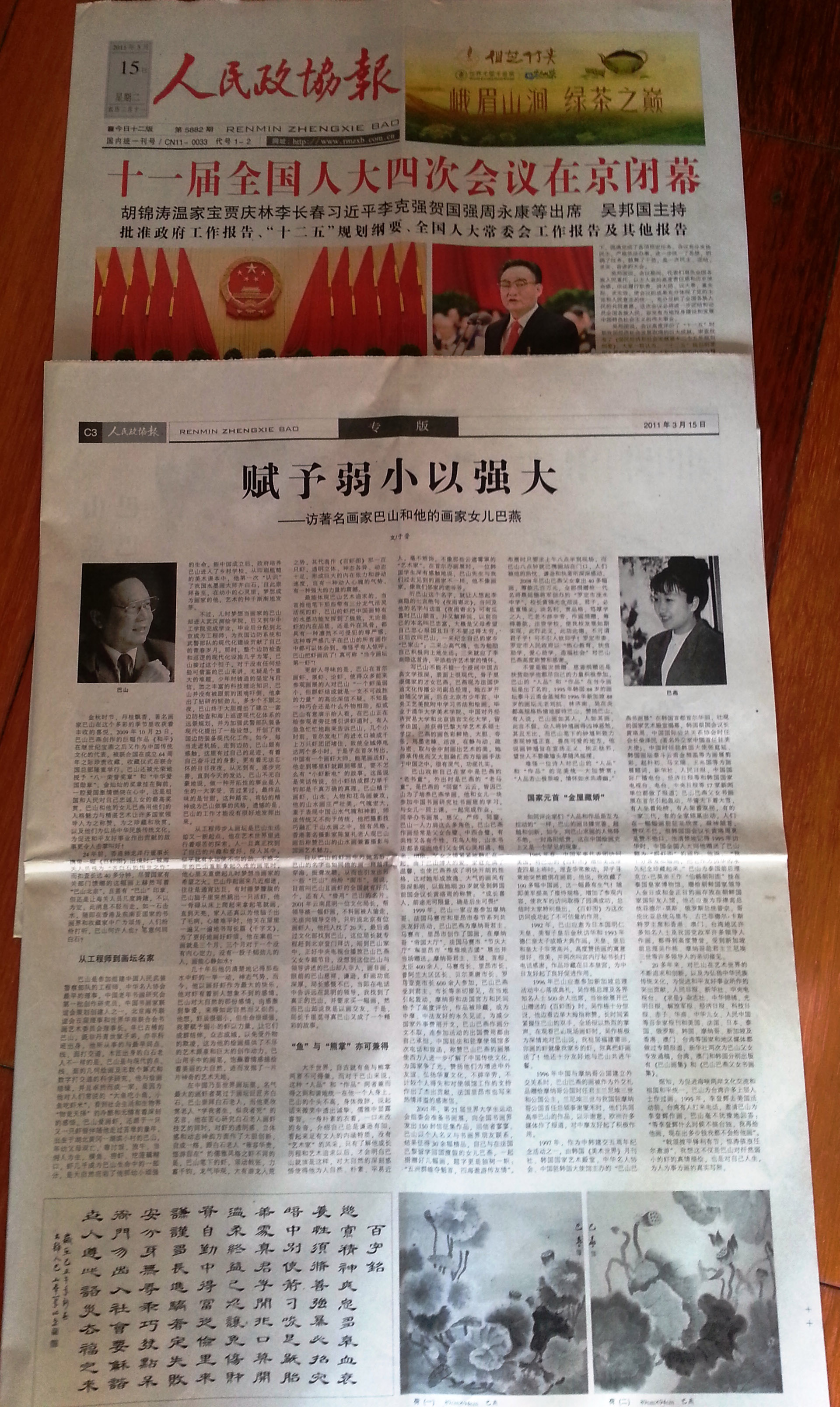 金秋时节,丹桂飘香,著名画家巴山在这个多彩的季节里收获着丰收的喜悦。中国人民解放军建军八十周年之际,巴山光荣地被授予“八一荣誉奖章”和“中华爱国勋章”。金灿灿的奖章挂在胸前,一腔爱国激情燃烧在心中,这是祖国和人民对自己忠诚儿女的最高奖尝。巴山和他的女儿巴燕用他们的人格魅力与精湛艺术让许多国家领导人为之称赞,为之珍藏和欣赏,以及他们为弘扬中华民族传统文化,为促进和平友好事业做出贡献的故事更令人击掌叫好!