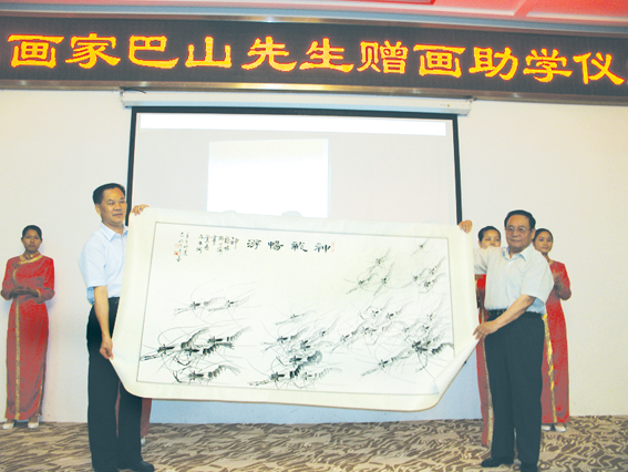 2008年7月21日,著名画家巴山先生在原广东省经委主任彭书宝的牵线下赴罗定市,将其精心创作的32幅书画作品赠送给罗定,用作公益,鼎力支持罗定教育事业的发展。巴山父女和一批热心公益的企业家,彭书宝、梁海森、陈巧能等老领导以及罗定市领导陈作权、李强、杨东凯、梁显清等出席了赠画仪式。