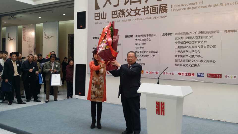 11月14日,由中共湖北省委宣传部、省文化厅、省文联指导,湖北省国画院主办,中国世界和平基金会、世界华商联合会、法中交流促进会以及数十家企业、机构支持的巴山、巴燕父女《对话丹青》画展在湖北美术馆举办。