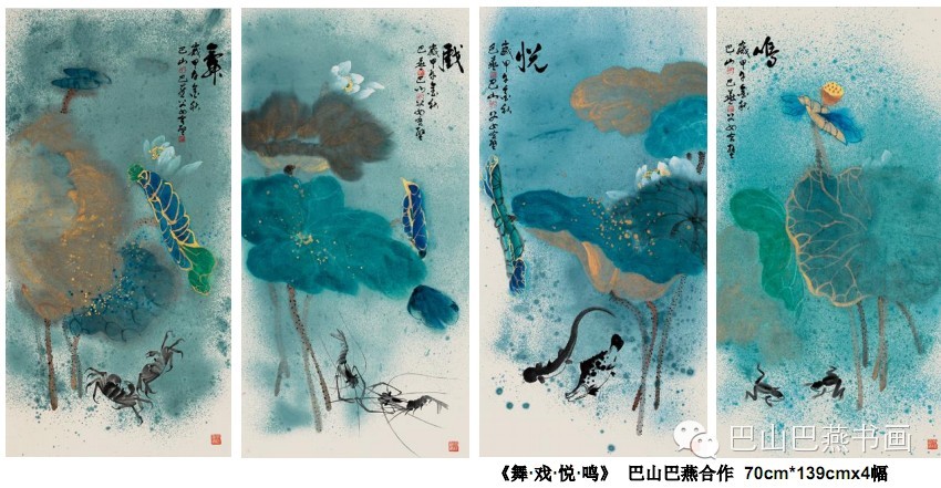 跳躍靈動,姿態萬千,臂鉗挺拔有力,長鬚開合擺動。藝術家繪畫蝦的神韻以近代的齊白石為專,當代則有巴山形神兼備。巴山臻於妙境的畫意,在濃淡之間,清晰地表現蝦的立體感及透明感。