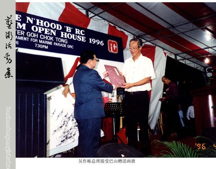 1994年,巴山应邀为泰国前总理克立·巴莫亲王作画,中华名人协会副会长曹岩华将军与巴莫亲王展示巴山作品。