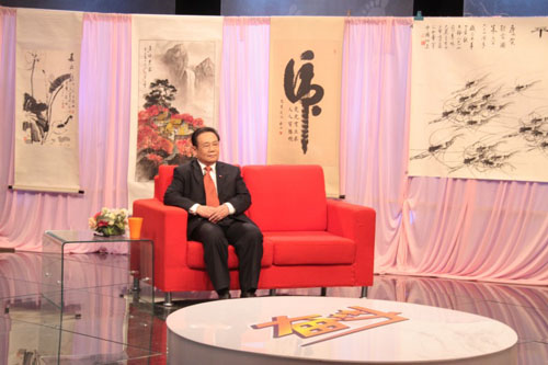 主持人:来,掌声再次感谢巴老。巴老是位画家,当然从他的书法看来,我认为也是一个书法家了。所以说,今天到我们栏目来,我不能放过他,我想请巴老留下您的墨宝。