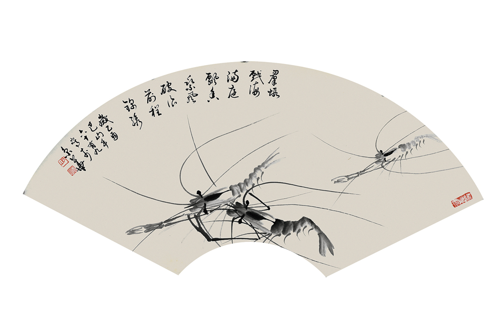 巴山 《虾(扇面)》 Shrimp on the Fan